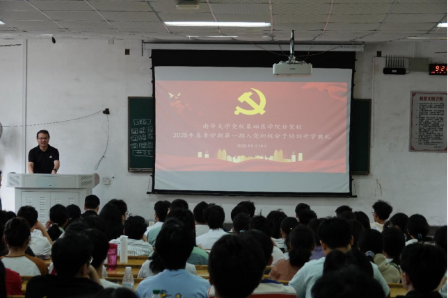 为了加强入党积极分子的思想政治教育,系统规范培训,提升其党性修养,2025年5月10日上午,南华大学基础医学院春季学期入党积极分子培训班开班典礼分别在形态楼201、301室举行。衡阳医学院党委书记、分党校校长曾国、党委副书记卢清华,院党务专干、学工室主任李翼,培训班班主任佘雅、金锦涛、第九学生党支部书记胡奉佳以及全体培训班学员参加。本次开学典礼分别由卢清华和李翼主持。