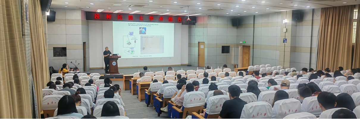 2025年6月12日上午,衡阳医学院主办、南华大学附属第一医院承办的南华大学“船山大讲堂” 中国科学院院士段树民“睡眠和情绪的环路解析和调控”学术报告会在南华大学图书馆学术报告厅举行。南华大学校长张灼华、副校长夏昆、衡阳医学院和附属第一医院等多个学院负责人出席了报告会,基础医学院、药学院、公共卫生学院、护理学院,在衡各附属医院100多名师生认真聆听了段树民院士的学术报告。