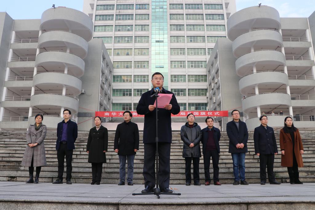 姜志胜发表“青春报国正当时”新学期致词,他饱含深情描绘了建国70年以来,在中国共产党领导,全国各族人民艰苦奋斗,在经济、科技、文化、国防等所取得的辉煌成就。2018年,南华大学迎来60周年校庆,在几代人的建设下,以“一基三实,一路三建”的发展思路,坚持内涵发展,各项工作取得了新突破,正向创建高水平教学研究型大学而努力奋斗。同时,他对全体师生寄予殷切希望,希望继承发扬衡医精神,不断创新、勇于探索,将自己的发展融入到民族的复兴伟业中,与时代同心、同向、同行,共筑南华大学新辉煌。升旗仪式在全体师生合唱《我和我的祖国》歌声中圆满结束。