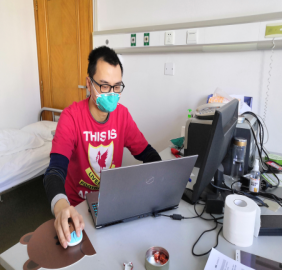 2月18日,谭洪毅根据教学要求,克服多种困难,在“学习通”平台上给2017级临床见习生进行线上授课,内容为支气管哮喘,课后利用休息时间在线上给学生答疑解惑。他把床搬到电脑旁,不误医疗和教学,做到抗疫授课时空巧妙结合;他把扎实的学识通过仁爱之心传递给学生,以高尚的人格魅力赢得学生敬仰,以模范的行为举止为学生树立榜样,将真善美的种子不断传播到学生的心中,尽到“教书育人,立德树人”的责任,做到救人育人内容两不误。