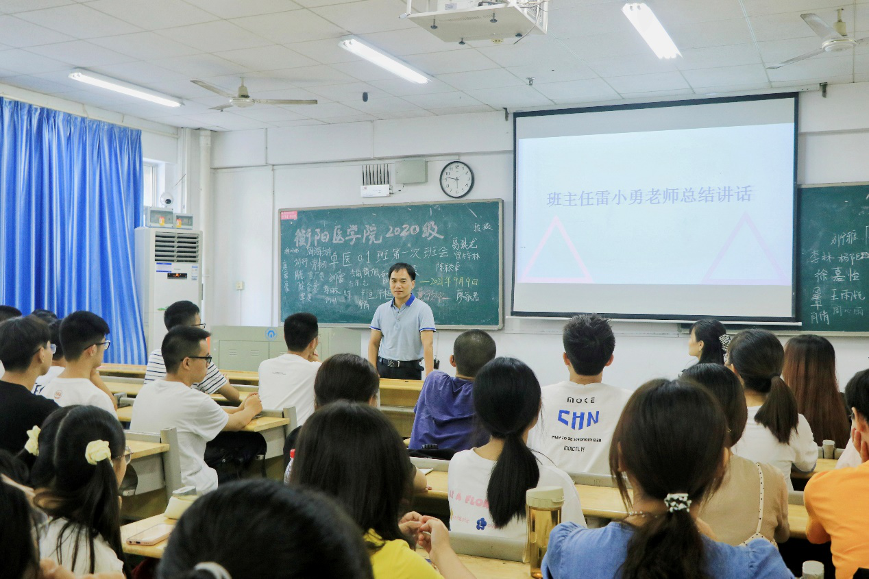 此次班会是衡阳医学院20级卓越医生班班主任和学生们的首次见面会,班会内容主要包括自我介绍、成绩分析总结、综合测评工作、爱校荣校教育、宿舍安全与疫情防控及新学期计划六个方面。