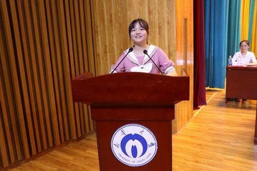 接下来,衡阳医学院2016级校友、全国临床技能竞赛金奖获得者王露珏以及护理学院2017级校友、全国护理技能竞赛金奖获得者彭慧分别上台演讲。她们不仅表达了对南华衡医苦心栽培的感激,更是表达了对学弟学妹们的期待。王露珏以吴孟超先生的“不缺乏专家,而是缺乏把自己给出去的人”结尾,希望在座的学弟学妹们肩负时代使命,不负韶华。