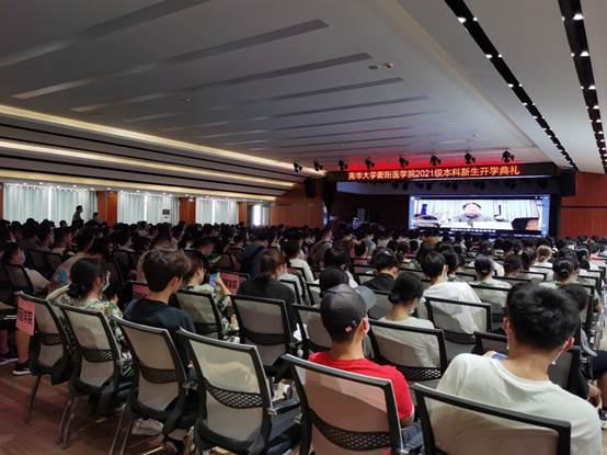 9月12日下午,星空web版登录入口2021级新生开学典礼在主会场红湘校区大会堂和分会场北校活动中心举行。南华大学党委委员、副校长兼衡阳医学院党委书记姜志胜,南华大学校务委员会副主任兼衡阳医学院院长王福俤出席,学校高层次人才代表容益康教授、陈智毅教授,全国优秀教师让蔚清教授,优秀校友湖南省儿童医院(南华大学儿科学院)院长肖政辉教授参加,校本部医科类学院全体院领导、2021级全体班主任及辅导员、2021级全体学生共1300余人参加典礼。开学典礼由姜志胜主持。