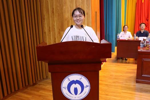 2020级免费医学生计划获得者、卓越医生班的刘蕾与药学院2021级药学专业曾钰骄分别代表老生与新生发言:老生倍感动力与激情,以在衡医学习而骄傲;新生满怀憧憬与期待,风华意气展自豪,他们都是为梦想、为青春奋斗的南华学子。