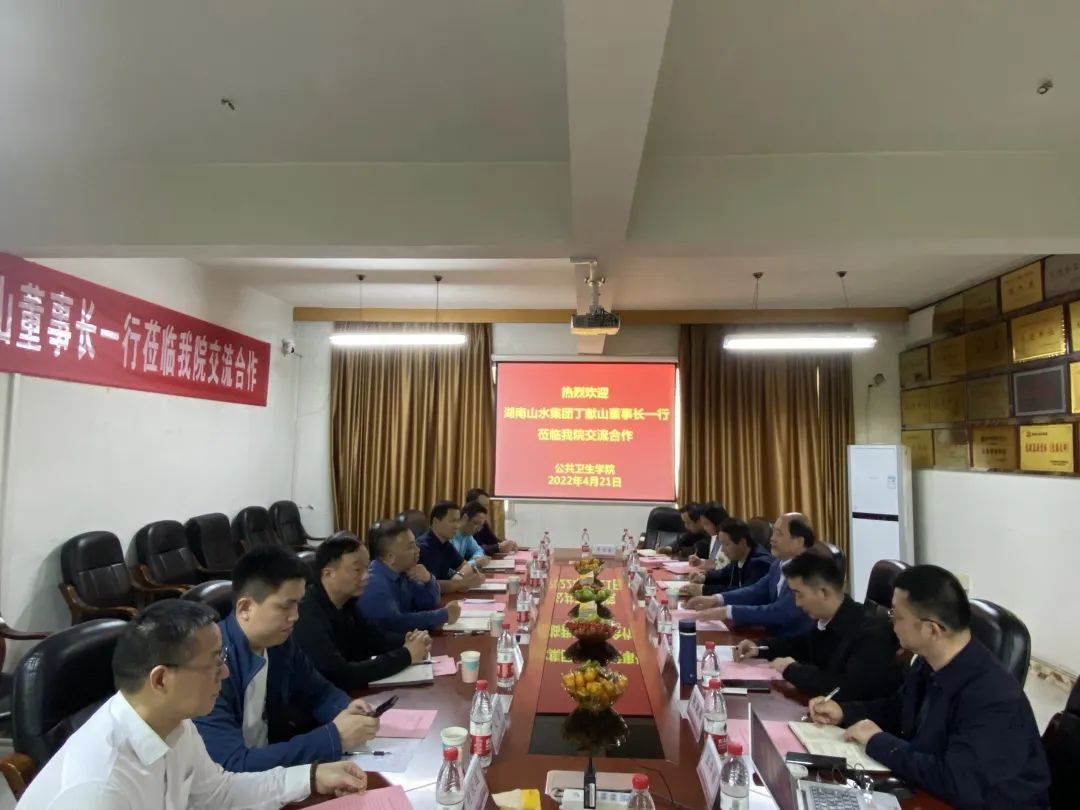 为进一步强化校企合作关系,落实合作事项,4月21日山水集团董事长丁献山一行到南华大学公共卫生学院开展交流合作洽谈。南华大学公共卫生学院党委书记龙鼎新组织热情接洽,双方召开座谈会就相关事宜深入开展交谈,充分交换意见,会议由龙鼎新书记主持。