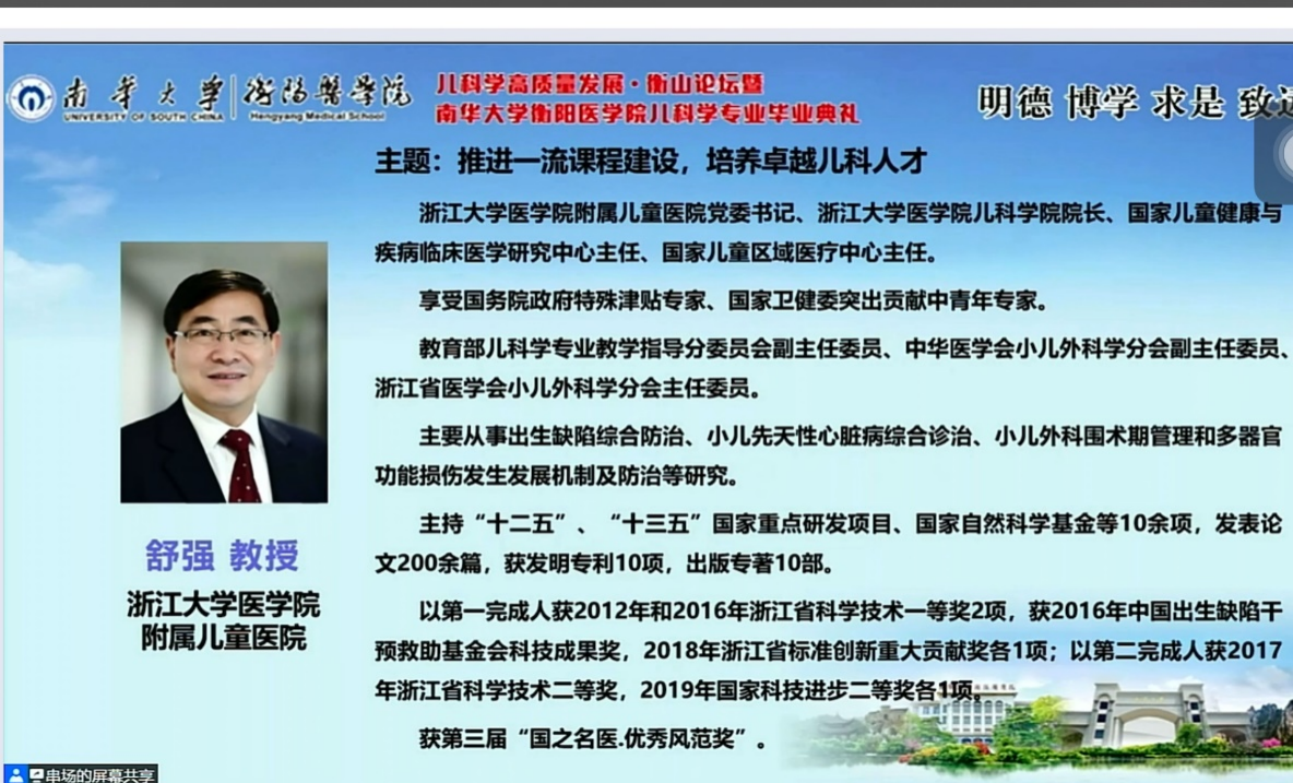 浙江大学医学院附属儿童医院党委书记舒强教授作《推进一流课程建设,培养卓越儿科人才》讲座,他强调教育改革与创新是新时代医学教育的根本要求,要推进儿科一流课程建设就要培育优秀的儿科人才,推进一流儿科课程建设,做到效果显著。