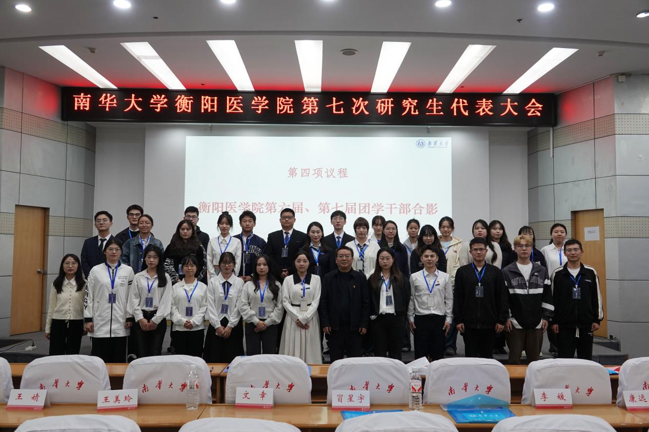南华大学党委研究生工作部部长马军、衡阳医学院党委书记曾国、衡阳医学院常务副院长屈顺林、衡阳医学院党委副书记卢清华、衡阳医学院副院长曾希、基础医学院副院长张晓东出席大会。校研会、各直属医院研会主席团代表,衡阳医学院213研究生代表,出席本次大会。会议由基础医学院2024级研究生岳欣汝、胡道谱主持。