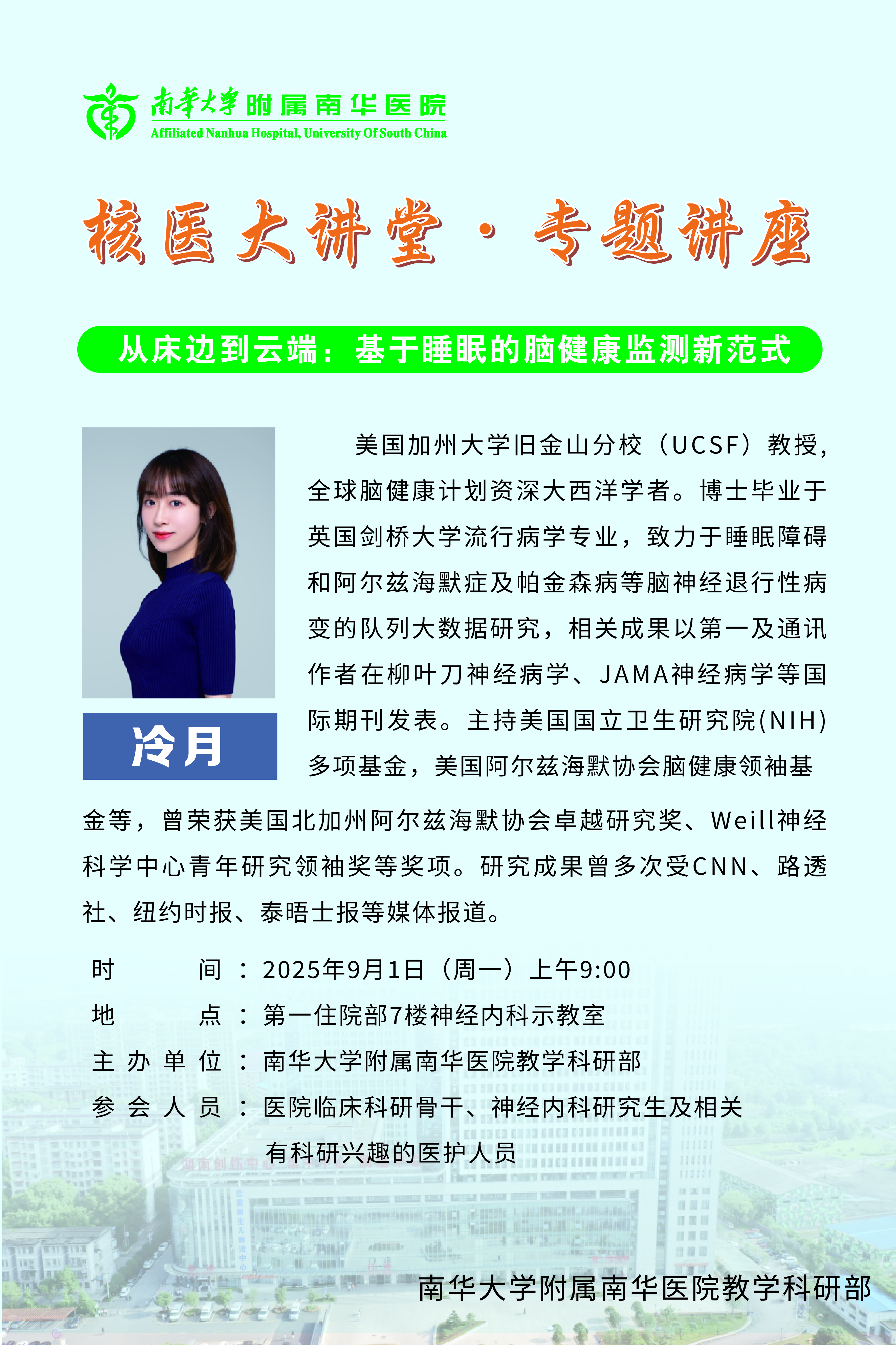 核医大讲堂·专题讲座 | 冷月教授:从床边到云端--基于睡眠的脑健康监测新范式