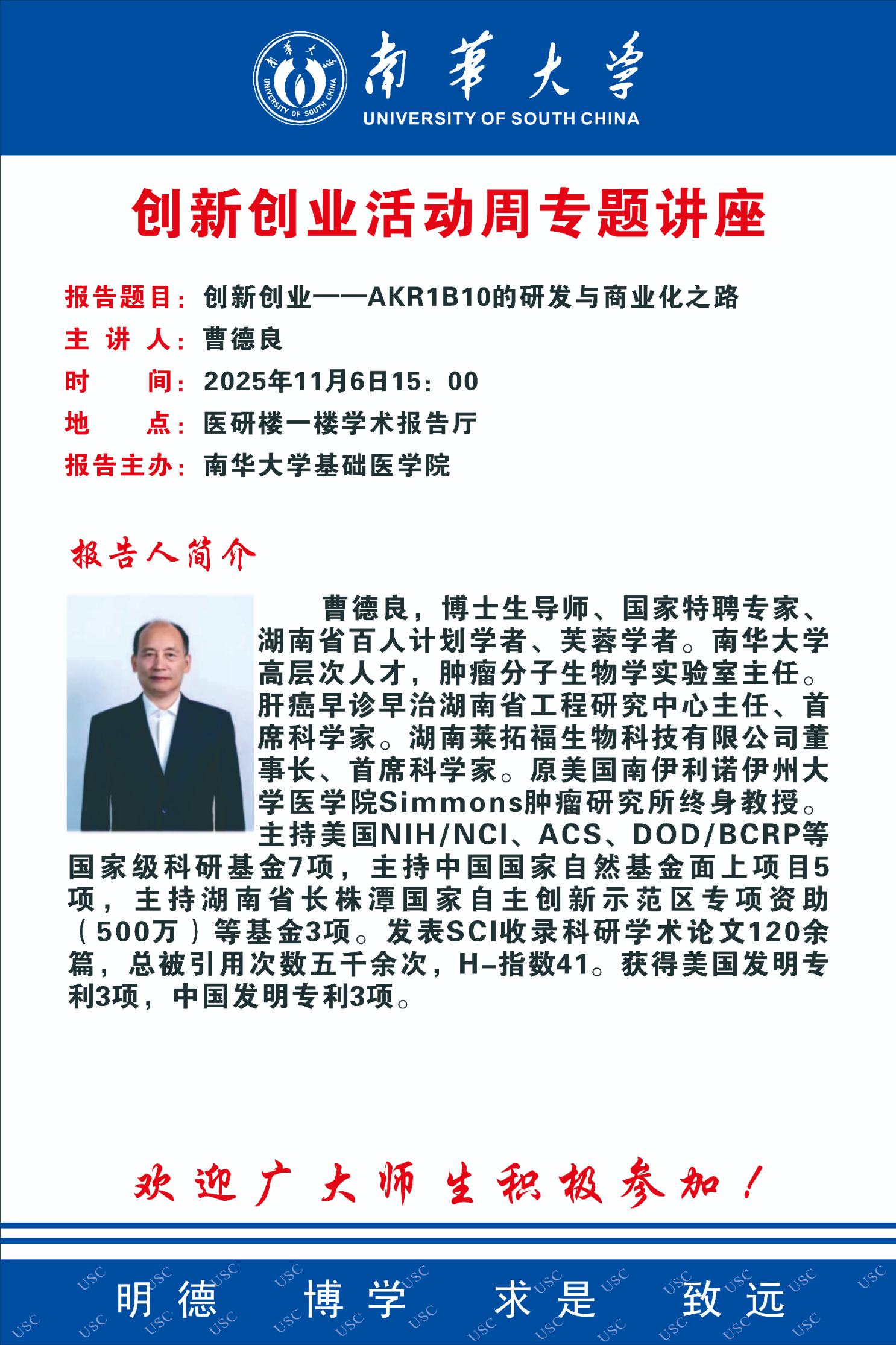 创新创业活动周专题讲座 | 曹德良:创新创业--AKR1B10的研发与商业化之路