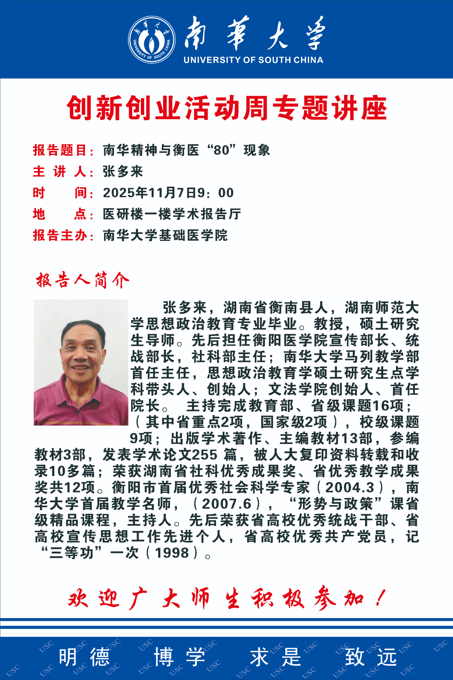 创新创业活动周专题讲座 | 张多来:南华精神与衡医“80”现象