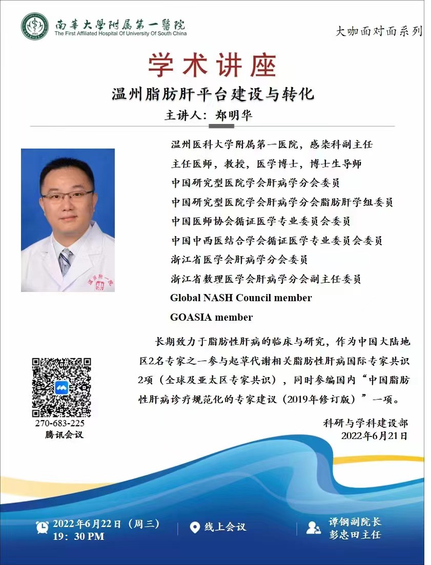 科研讲座 | 附属第一医院大咖面对面系列:温州脂肪肝平台建设与转化