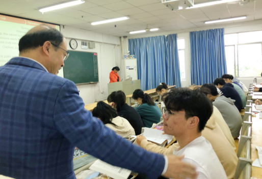 王校长细听了《大学英语》课程,密切关注学生的课堂学习状态,从不同角度对廖慧华老师的课堂进行了点评,并在阅读期间向学生了解情况,耐心嘱咐学生们专心上课,提高课堂学习效率。