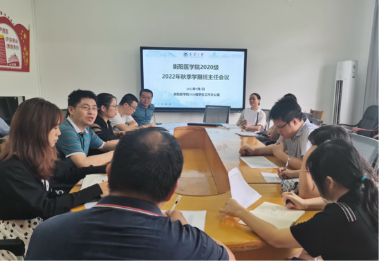 好班风促学风,新学期伊始,为了加强班风建设,9月2日中午,衡阳医学院2020级秋季学期第一次班主任会议于医学院学工办公室召开,院党委副书记卢清华,辅导员苏玲、周玉林、廖敏,2020级全体班主任参加此次会议。2020级年级负责人、辅导员苏玲主持本次会议。