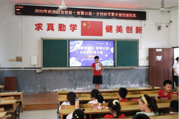 2025年7月7日下午15时,由科技教育协会、春雷公益主办,田家炳基金会支持的南华大学基础医学院“春晖医路,湘韵暖行”暑期三下乡社会实践服务队联合新邵县坪上镇中心完全小学共同举办的乡村夏令营活动闭营,107名营员在为期6天的活动中通过多元课程收获知识与成长,志愿者与师生共同见证这一意义非凡的时刻。