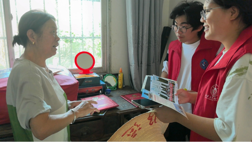 街头实践:创新文化传播模式。在保靖县集市,团队打造了“苗韵文化+健康服务”惠民摊位。文化展示区突破传统陈列模式,通过纹样解析与苗药知识互动,让群众在趣味体验中理解非遗内涵;互动环节创新设置抽奖机制,群众在了解文化后可赢取苗元素礼品。“没想到纹样里藏着祖宗的故事!”这种“传播+体验+服务”的创新模式,获得群众积极反馈,为非遗活化提供实践样本。
