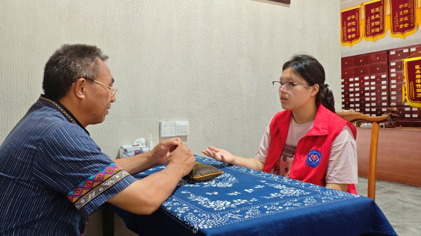 医道探寻:叩问民族医学智慧。7月3日至4日,团队走进苗药非遗馆与杨氏正骨馆,在草木药香中探寻民族医药的千年智慧。在苗药非遗馆,二十四脉诊法通过五指脉诊精准定位病因的诊疗智慧,与数百种道地药材标本共同构建起完整的“两纲五基”传统医学图谱;杨氏正骨馆省级非遗传承人杨医生“X光辅助诊断+祖传正骨手法”的创新实践,生动展现了传统医学与现代科技的融合可能。调研发现,构建“诊疗可视化、疗效标准化”的现代传播体系,是破解苗医药传播困境的关键路径。