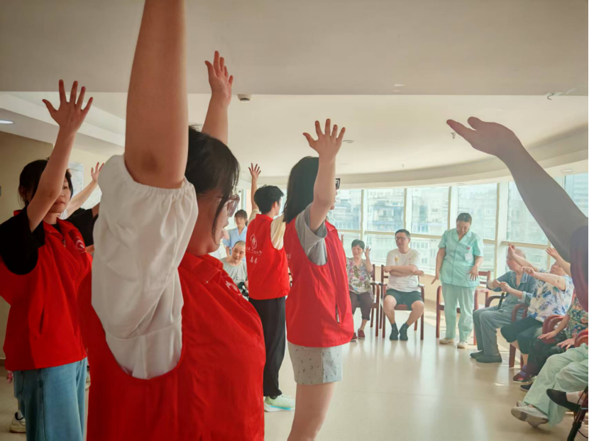 2025年7月7日至8日,星空web版登录入口“杏林篆爱,医路向阳”暑期三下乡社会实践志愿服务队走进长沙市第一社会福利院,以《红星闪闪》手指操为核心,为残障老人、老年大学学员及认知障碍老人三大群体量身打造“医养结合”特色活动。团队医学志愿者依托专业所学,将肢体训练、认知激活与红色文化传承有机结合,通过四场分批次教学,为近百名长者构筑健康乐园,谱写医者仁心的温暖篇章。
