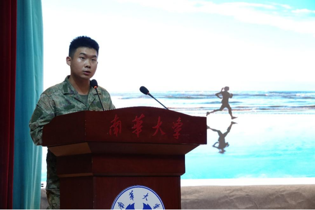 基础医学院23级口腔01班冉凌滔兼医学院副营长、一连连长作为教官代表发言,结合自身经历,直言军训21 天“很苦”,需直面日晒、重复训练等挑战,却能让人战胜自我、锤炼意志。他希望新生借军训学会尊重纪律、敬畏规则,在同伴互助中收获珍贵情谊,更要坚持到底,不仅习得标准动作,更塑造勇敢自信的内心。并且强调军训是生动的爱国主义教育,以今日汗水致敬抗战先辈牺牲,传承不屈意志、锤炼时代担当,号召新生共同度过这段有意义的旅程。