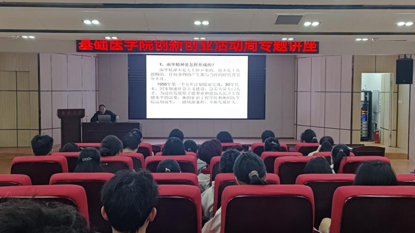 此次讲座是基础医学院创新创业周的重要组成部分,旨在拓宽师生学术视野,激发“敢想敢试、坚持不懈”创新热情,助力构建"以赛促学、以赛促研"的良好氛围,在医学研究与健康领域坚守科学初心、突破边界,用创新守护生命健康。