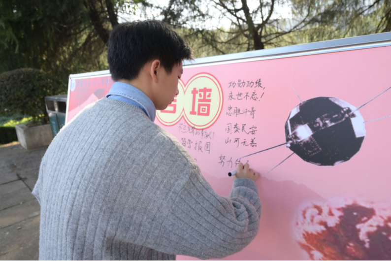 活动现场设置“坚守·精研·奋进·传承”四大打卡点,形成连贯的沉浸式体验链条。参与者通过观看两弹一星元勋纪录片,了解邓稼先、钱学森等科学家的奋斗故事并完成知识问答,在求真中感悟初心;通过“两弹一星”模型拼图任务,在动手实践中体会科研精神与医学操作的精准性共通;围绕核技术与医学交叉领域展开快问快答,深化对核技术反哺医学的理解;最后在留言墙书写致敬语或个人感悟,形成情感共鸣的闭环。