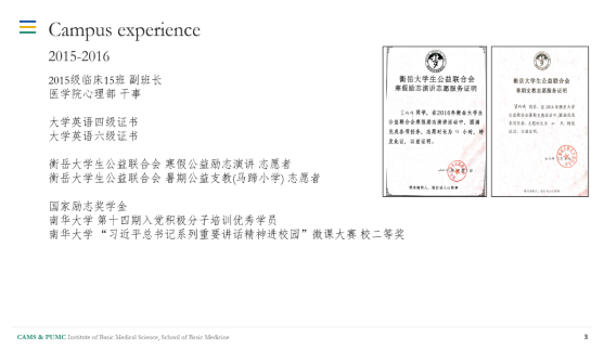 分享会第一部分,侯杨峰和同学们分享了他大学五年的学习生活。大一学年,他积极参与学生活动,曾担任临床15班的副班长和院心理部干事,利用寒暑假的时间加入衡岳大学公益联合会,在为同学们服务的过程中充实了自己的大学生活,在公益活动中感受到了人生价值的体现。大二学年,开始建设自己的科研之路,他加入药理小组,正式开始接触科研。大三学年,成为了南华大学医学院永州见习队的队长,组织编撰了两本文学类学生刊物,并且发表了两篇中文综述,在科研方面取得了不错的成果。大四学年,在南华附二实习期间发表了第一篇全英文文献综述。大五学年,参加了北京协和医学院的暑期夏令营,明确了自己未来的攻读方向。因此,侯杨峰鼓励同学们勇敢树立目标,坚定践行目标,抓好大学时光,不断充实自己。
