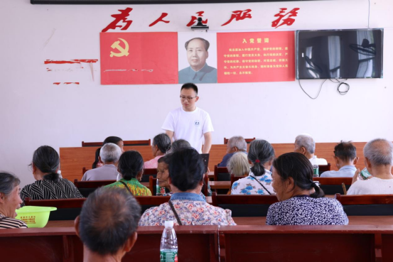 7月12日上午,星空web版登录入口2023年湖南省“芙蓉学子·乡村振兴”公益计划项目之“仲夏芙蓉医路行,医路向前”团队全体成员来到邵阳市绥宁县牛背岭村开展糖尿病知识宣讲以及健康义诊活动。
