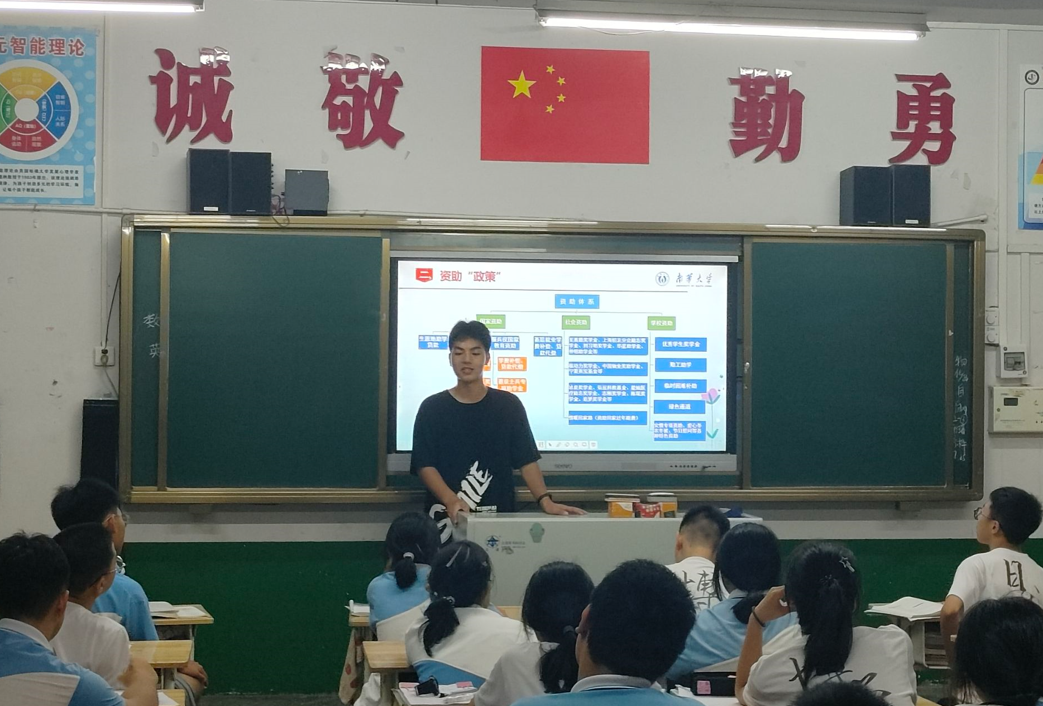 校内宣讲活动主要是在班级会议上宣传,学院对每场宣讲会议做了精心安排,资助宣传大使们在宣讲会上分享了自己在资助政策宣传活动的经历和感受。队员们通过PPT的详细宣读与解读,向同学们宣讲关于国家和湖南省教育资助的政策,号召同学们宣传多在家乡学校积极宣传资助政策的同时,进一步宣传南华。