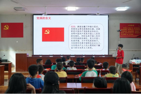 7月9日,志愿者们通过展示祖国旗帜、教授国歌歌词等方式,让孩子们在庄严的氛围中感受到了红色文化的厚重与魅力,引导他们在红色文化的熏陶下茁壮成长,成为有理想、有本领、有担当的新时代接班人。