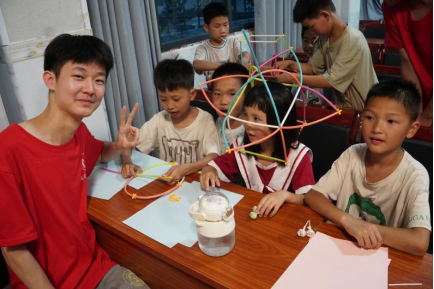 7月8日,活动转入了“创意无限,健康同行”的温馨篇章。志愿者们化身为“创意魔法师”,引领孩子们踏入了一个充满想象与创造的奇妙世界。吸管模型、折纸艺术、叠纸飞机……一系列动手实践活动,不仅锻炼了孩子们的动手能力,激发了他们的创造力与想象力,更让他们在探索与实践中感受到了科学的魅力与乐趣。实践团成员还为孩子们进行了细致的视力检测,并耐心传授眼健康知识,让孩子们懂得了保护视力的重要性,为他们的健康成长保驾护航。