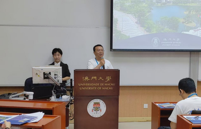 接下来,星空web版登录入口党委副书记卢清华代表研学团一行讲话。他衷心感谢澳门大学对此次培训的所做的周到的安排和精心的准备。卢书记表示,希望同学珍惜机会,认真学习,充分吸收,学有所思,学有所得,为未来的医学事业贡献力量。也期望通过此次专题培训,与澳门大学建立更加密切的合作关系,进一步加强合作和交流,共同培养具有国际视野和专业技能的医药与健康科学领域人才。
