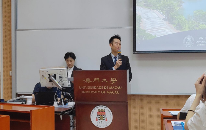 上午9点40分,开班仪式在庄重而热烈的氛围中拉开帷幕。澳门大学持续进修中心主任刘丁己教授首先致欢迎词,他对远道而来的南华大学的师生表示热烈的欢迎。他向我们介绍澳门大学的发展历史与本次专题培训的课程和专业的授课老师。刘教授强调,澳门大学一直致力于提升教育质量,促进国际交流;坚持立足澳门,共建湾区,融入国家,走向世界为办学宗旨。他希望同学们积极了解澳门的文化历史,多与老师交流,在本次研学活动中学有所获。
