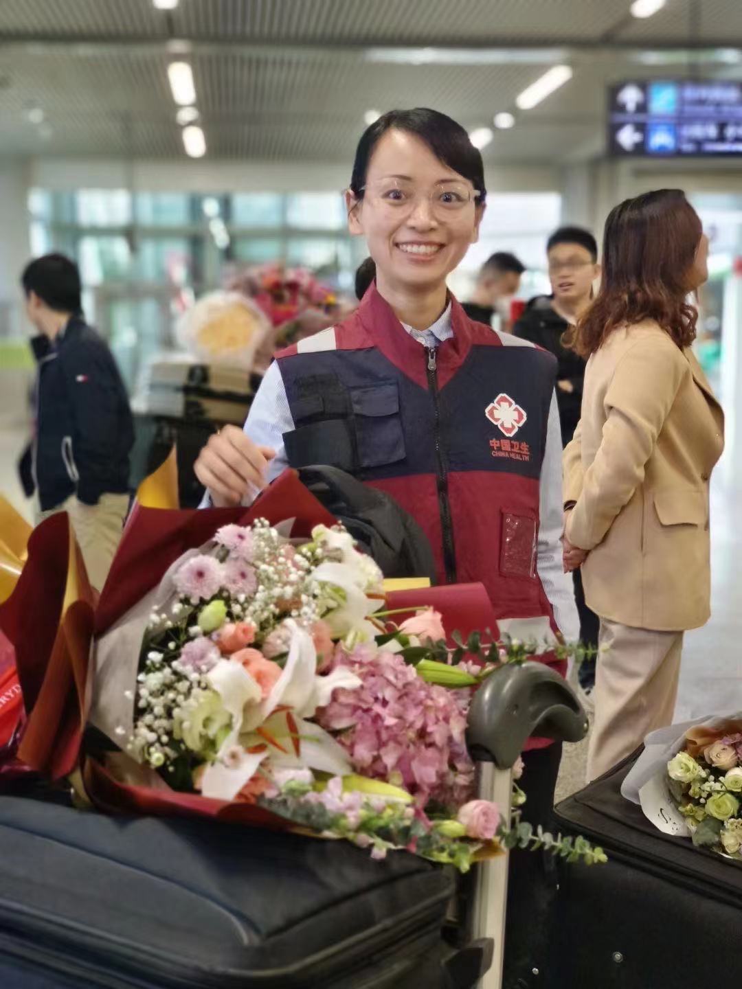 最是一年春好处,恰逢英雄归来时。湖南省派出的中国湖南第23批援塞拉利昂医疗队以生命担当友好使者,用热血铸就忠诚卫士,圆满完成援外医疗任务平安归国。历经32小时的长途跋涉,南华医院谢靖婧同志随医疗队全体成员于3月9日上午9:30分平安抵达长沙。医院委派代表和家属前往黄花机场接机,向谢靖婧同志圆满完成任务凯旋回国表示热烈的欢迎和诚挚的慰问。