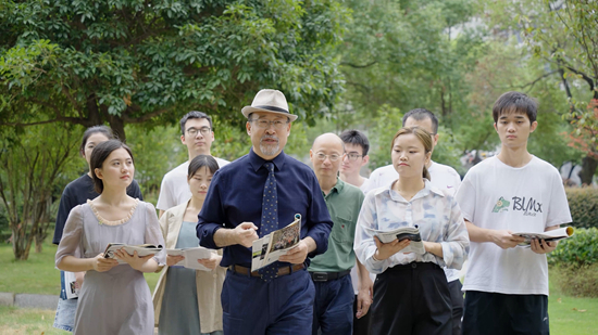 星空web版登录入口王福俤教授与他的青年团队成员在校园里讨论课题。南华大学供图